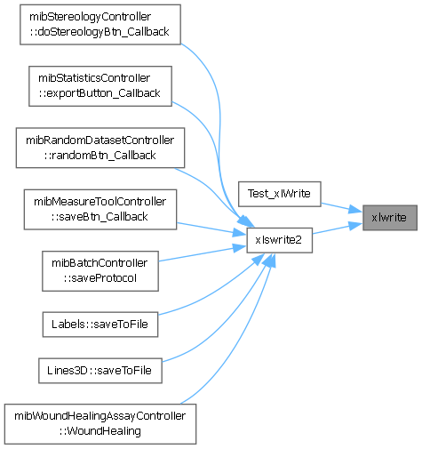 XLWRITE Write to Microsoft Excel spreadsheet file using Java XLWRITE(FILE,ARRAY) writes ARRAY to the first worksheet in the Excel file named FILE, starting at cell A1. It aims to have exactly the same behaviour as XLSWRITE. See also XLSWRITE. More...