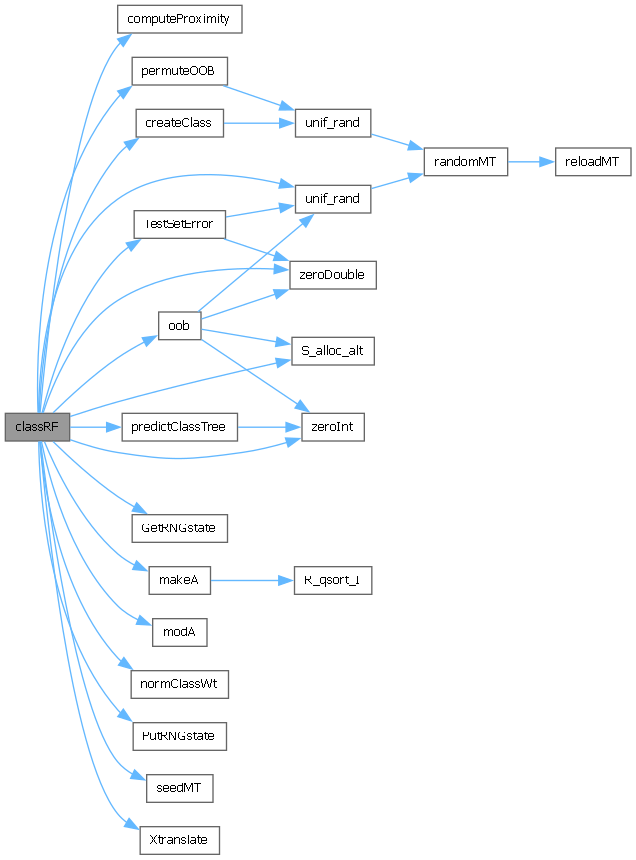References computeProximity(), createClass(), F77_CALL, GetRNGstate(), makeA(), modA(), n, normClassWt(), NULL, oob(), permuteOOB(), predictClassTree(), PutRNGstate(), Rprintf, S_alloc_alt(), seedMT(), swapInt, TestSetError(), unif_rand(), Xtranslate(), zeroDouble(), and zeroInt().