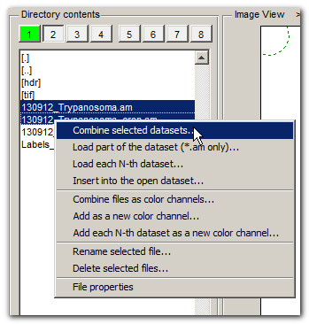 - Combine as color channels..., combines selected datasets into a single 2D slice where each dataset is assigned to own color channel.
