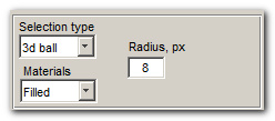 Note! The 3D shape of the ball is defined by the pixel dimensions, see Dataset Parameters in Menu->Dataset->Parameters. Selection modifiers