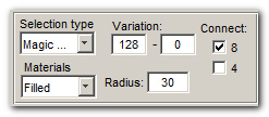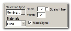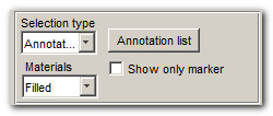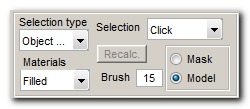 This panel consists of two parts. The left hand side of the panel has two combo boxes (Selection type and Materials) that are always seen. The view of the right hand side of the panel may be different depending on the Selection type.