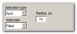 Use the Radius, px edit box to specify the radius of the spot. Works also in 3D. Selection modifiers