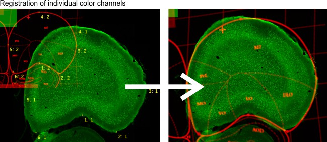 Register individual color channels using Annotations (Segmentation panel -> Annotations):