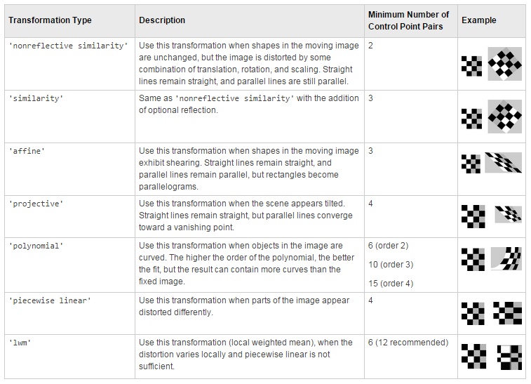 - imregtform) : configure parameters (see