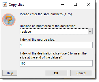 This is useful for duplicating a slice to correct errors (e.g., replacing a corrupted slice) or rearranging data (e.g., inserting a reference slice). The image and all layers are copied, maintaining alignment across the dataset.