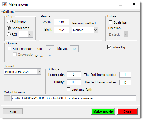 - Width: modify width of the video file (the width depends on aspect ratio of the voxels).