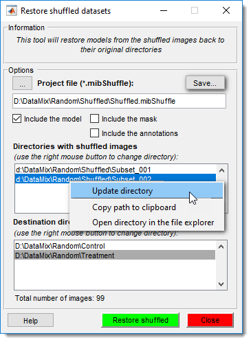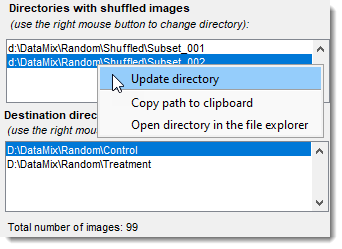 to select the project file ( - The Directory with shuffled images and Destination directories lists populate automatically.