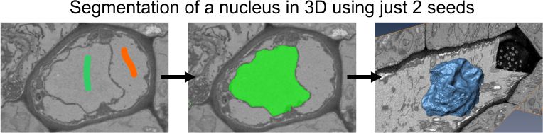 - Superpixels classification: Ideal for objects with distinct intensity properties. Calculates SLIC superpixels (2D) or supervoxels (3D) and classifies them using provided labels for objects and background. See Superpixels example.
