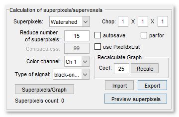 - Select superpixel/supervoxel type: SLIC or Watershed