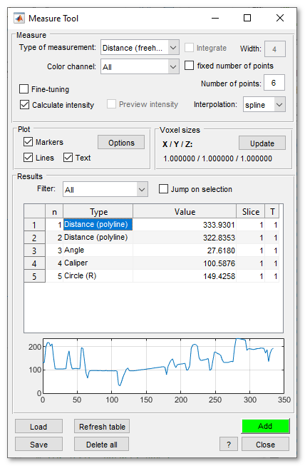 Based on the Image Measurement Utility by Jan Neggers, Eindhoven University of Technology. This tool enables various length measurements and generates corresponding intensity profiles.