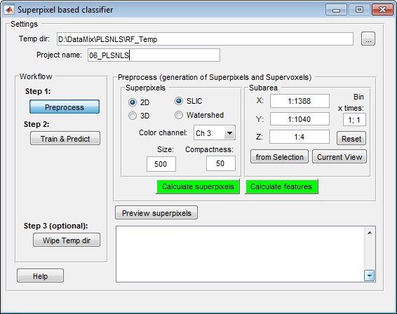 The Classifier of superpixels/supervoxels in Microscopy Image Browser is an effective method for automatic image segmentation, employing a train-and-predict approach. It utilizes the SLIC (Simple Linear Iterative Clustering) algorithm by Radhakrishna Achanta et al. from Ecole Polytechnique Federale de Lausanne (EPFL), Switzerland, to cluster pixels into superpixels (2D) or supervoxels (3D). These clusters are then characterized, and their features are used for classification, simplifying the segmentation process.