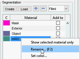 - Highlight the first material, right-click, and select Rename from the context menu to name it Object