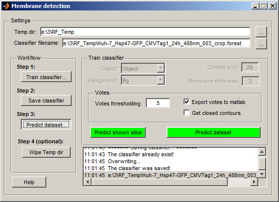 - Review the Votes section: adjust the threshold, enable export to MATLAB, or enforce closed membrane profiles