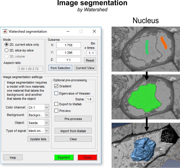 Semi-automated image segmentation using the Watershed method in Microscopy Image Browser.