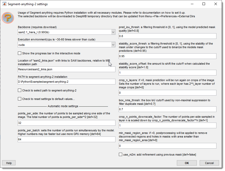 - : select cuda (GPU) or CPU (slower).